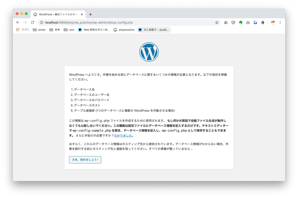 :wp_practice(さっき作ったDB名) - データベースのユーザー名